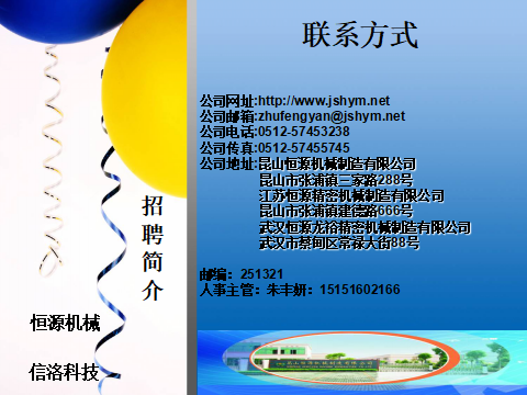 聯(lián)系人:陳先生 電話:0512-36914219 傳真:0512-57455745 郵箱:chenliping@jshym.net 昆山市張浦鎮(zhèn)建德路666號